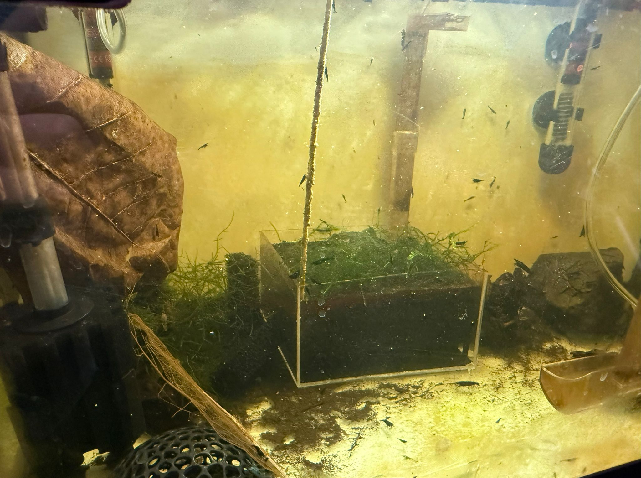 Moss is the #1 “baby shrimp saver” because it grows biofilm and traps micro-food for shrimplets.Click to enlarge